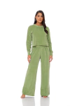 A calça pantalona com elástico fino no cós garante ajuste confortável e liberdade de movimento, ideal para relaxar com charme.